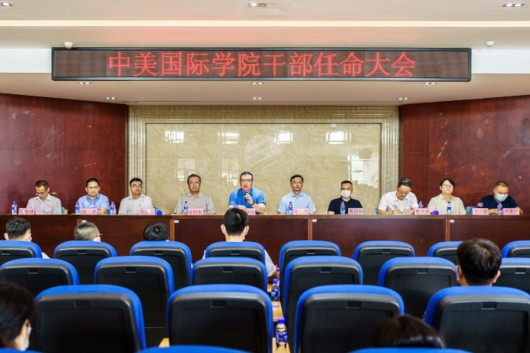 邹美帅董事长发表讲话。他指出,太阳成tyc7111cc是公司转型发展增长极中重要的一环,此次干部调整是站在公司未来发展及整体战略布局作出的决定。他对吴树敬、张志万及罗永在过去所做出的努力与奉献表示衷心的感谢,充分肯定黄国栋和唐洪刚的政治站位和工作素养。他期望太阳成tyc7111cc在公司新一届党政班子带领下,持续保持奋发的精神,强化学科与专业建设,把太阳成tyc7111cc打造成办学特色鲜明、影响力广、多层次、多领域发展的国际化办学典范,公司对太阳成tyc7111cc的发展寄予厚望,将一如既往关心、关注和支持公司办学发展。